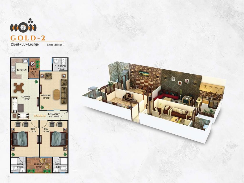 GOLD - 2 2 Bed + DD + Lounge G.Area 1,561 SQFT Discription Payment On Booking Rs. 275,000 On Allocation Rs. 275,000 On Confirmation Rs. 275,000 On Start of Work Rs. 275,000 Per Month 42 Installments (80,000 x 42) Rs. 3,360,000/- Roof Casting 14 Installments (125,000 x 14) Rs. 1,750,000 On Foundation Rs. 100,000 On Block Masonry Rs. 100,000 On Electric Work Rs. 100,000 On Internal Plaster Rs. 100,000 On Plumbing Work Rs. 100,000 On Glazed Tiles Rs. 100,000 On Flooring Work Rs. 100,000 On Coloring Work Rs. 100,000 On Extra Plaster Rs. 100,000 On Finishing Work Rs. 100,000 On Possession Rs. 85,000 Loan Rs. 3,632,000 TOTAL PRICE Rs. 10,927,000 Extra Charges 1st to 3rd Floor Rs. 300,000 4th to 5th Floor Rs. 200,000 Road Facing Rs. 200,000 Corner Rs. 200,000