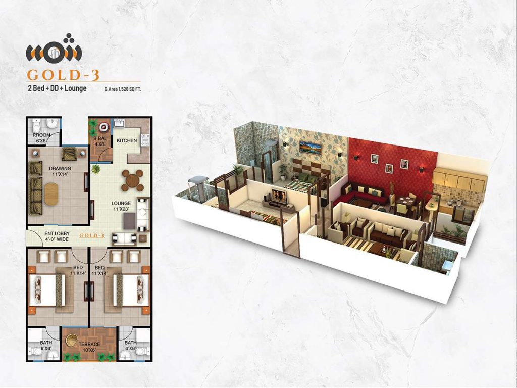 GOLD - 3 2 Bed + DD + Lounge G.Area 1,526 SQFT Discription Payment On Booking Rs. 275,000 On Allocation Rs. 275,000 On Confirmation Rs. 275,000 On Start of Work Rs. 275,000 Per Month 42 Installments (75,000 x 42) Rs. 3,150,000/- Roof Casting 14 Installments (125,000 x 14) Rs. 1,750,000 On Foundation Rs. 100,000 On Block Masonry Rs. 100,000 On Electric Work Rs. 100,000 On Internal Plaster Rs. 100,000 On Plumbing Work Rs. 100,000 On Glazed Tiles Rs. 100,000 On Flooring Work Rs. 100,000 On Coloring Work Rs. 100,000 On Extra Plaster Rs. 100,000 On Finishing Work Rs. 100,000 On Possession Rs. 95,000 Loan Rs. 3,587,000 TOTAL PRICE Rs. 10,682,000 Extra Charges 1st to 3rd Floor Rs. 300,000 4th to 5th Floor Rs. 200,000 Road Facing Rs. 200,000 Corner Rs. 200,000